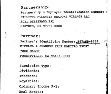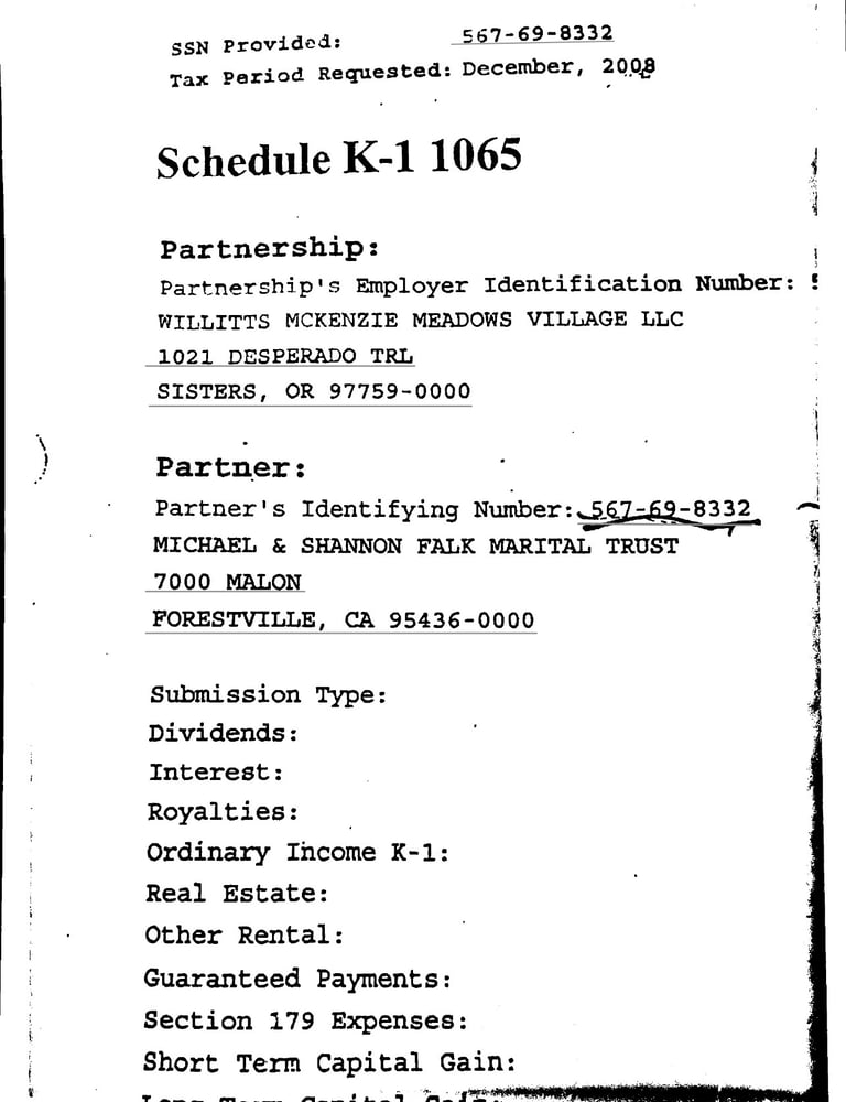 I'm not the one who's been filing fraudulent taxes and lying on official government documents for 20 years. That's a Michael Falk and Bill Willitts and Brian Witt thing.