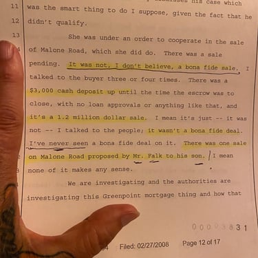Because I had a good friend from California who knows all about the cooperative douche between the Willitts sadistic narcissist and the Falk Sociopath, and the inter generational sexual abuse of myself and my daughter, the mortgage fraud scheme my ex husband and stepson Johnathan Falk(Just because you change your last name to he to human doesn't make you one) and my friend from California reported my abuse, describing my family as "diabolical" and so so now the factual evidence and 4 days of describing my decades of abuse at the hands of the Willitts Falk and the inhumane? It' s now part of my New York official record, and in the end? I guess thank you