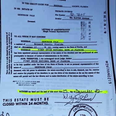 For the record? You lied Michael Falk. Your mother didn't die in 1993. She died in Florida November 17, 1992.