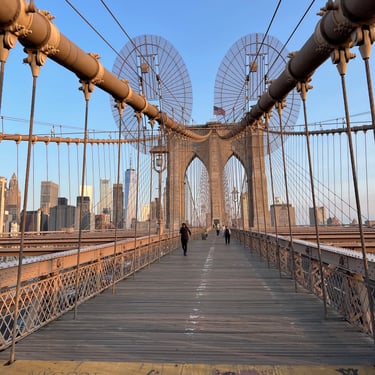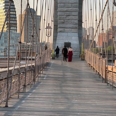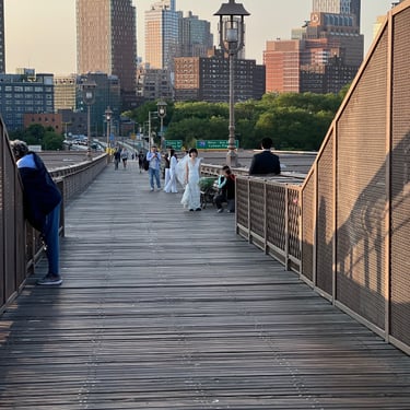 If you are intent on saying I do on the Brooklyn Bridge? Statistically? 90% of the brides and grooms enter their marriage from New York City onto the bridge that if they walked the full span? Spoiler alert you wind up in Brooklyn anyway. Take some free advice and come at the thing where there's the least traffic and best sunrise. Brooklyn!