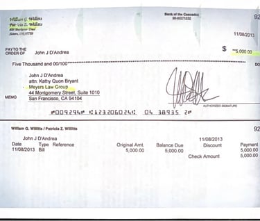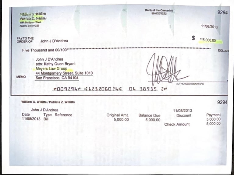 You exist Merle Meyers to take bribes from Bill Willitts on November 8th four days after you venue shopped me to Sonoma County. Given the Federal case was tainted with racketeering what does that make you in Sonoma County Mr. Meyers?