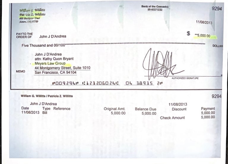 Your November 8, 2013 Check from William and Patricia Willitts in Sisters Oregon? Blood Money. A lot like Gertrude's Florida Will.